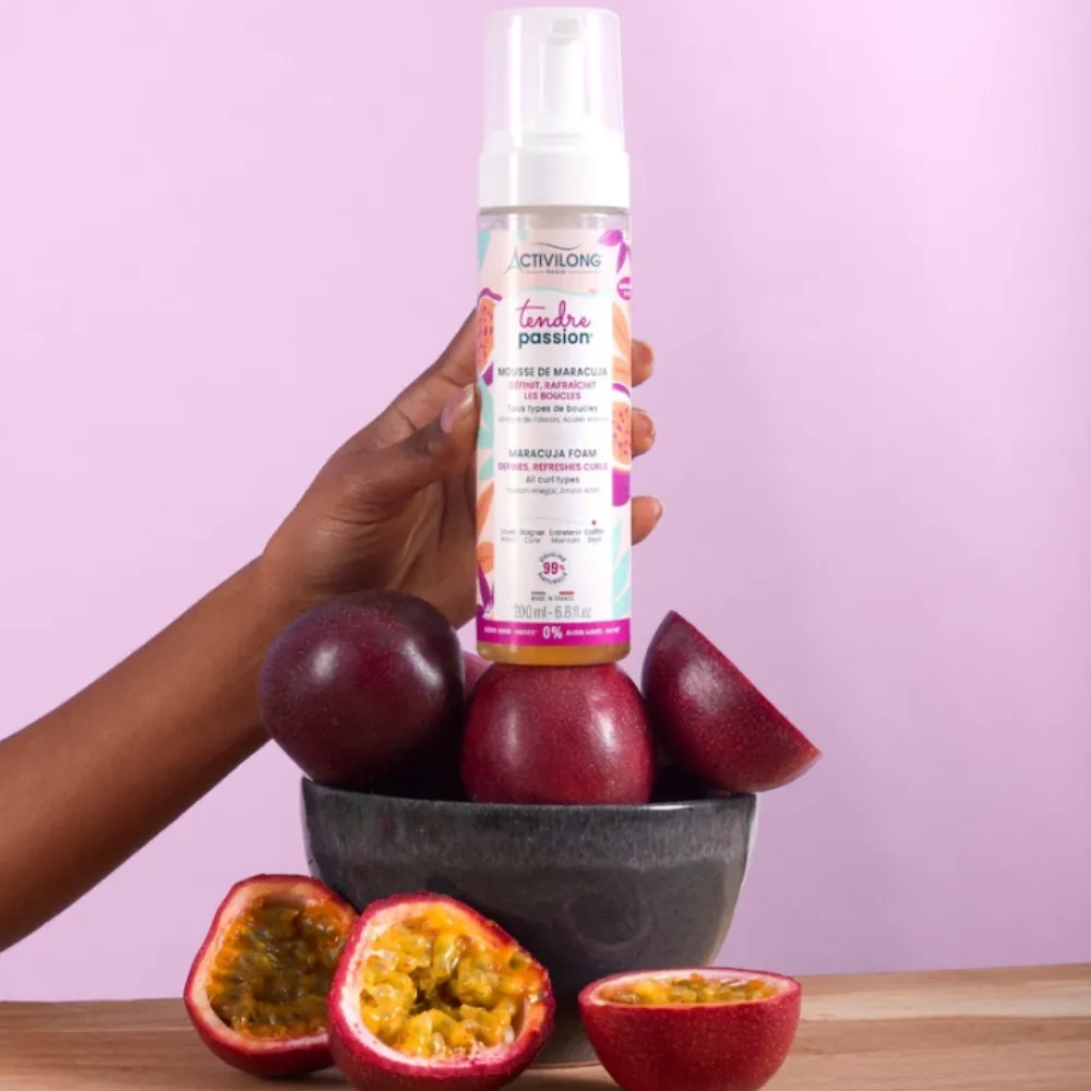 Mousse ligera de maracuyá que define rizos, aporta volumen y brillo sin residuos. Esculpe el cabello sin dejarlo rígido. Ideal para mantener rizos llenos de vitalidad todos los días.