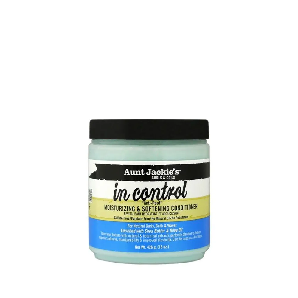 Aunt JackieĀ“s Curls & Coils In Control 426g es un acondicionador hidratante y suavizante. Nutre y acondiciona de manera profunda el cabello rizado difĆcil de manejar, deshidratado y frĆ”gil. Es un excelente tratamiento para restaurar y acondicionar cualquier tipo de cabello y textura, incluyendo el cabello natural, teƱido, desrizado o tratado quĆmicamente. Gracias a su suavidad y propiedades puede ser utilizado a diario. Sin sulfatos. Sin parabenos. Sin aceite mineral ni petrolato. Cabellos naturales, coils & waves.