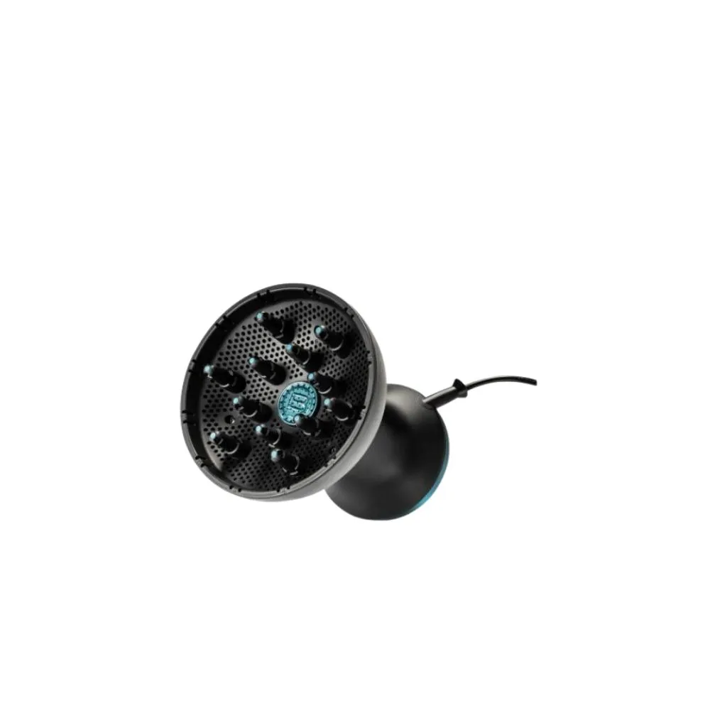 Sistema basado en la combinación de 3 elementos resultantes de la investigación de Imetec: • la acción combinada de la particular rejilla perforada que distribuye uniformemente el aire y 12 dedos de largo, que mantienen los rizos en forma y compuestos, te permite secar tu cabello suavemente, sin despeinarlos, realzando su forma y elasticidad; • las diferentes combinaciones de flujo de aire y temperatura, junto con el suave flujo de aire frÃo, permiten un secado personalizado para cada tipo de rizo; • el difusor XL diseñado para abarcar una mayor cantidad de cabello y secarlo rápidamente.  El cuidado del cabello está garantizado gracias al control de calor digital: un sensor de temperatura avanzado, en sinergia con el chip digital, mide la temperatura del aire emitido 50 veces por segundo y la mantiene en el nivel óptimo para proteger el cabello del daño del calor excesivo. La tecnologÃa avanzada con iones negativos y positivos ayuda a mantener la hidratación del cabello y promueve la reducción del frizz. Tecnologia a iones negativo – positivo