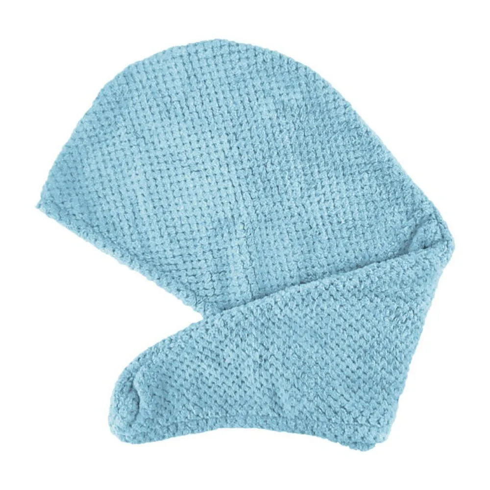 Casalfe toalla turbante de microfibra 100% de tacto suave y agradable. Con botón de ajuste para sujetarla y evitar que se mueva para que el pelo quede bien recogido.