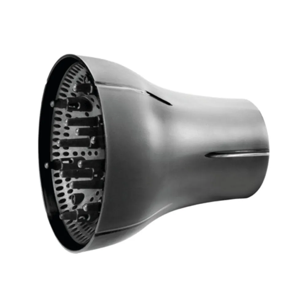 Su diseño está especialmente pensado para repartir el aire de forma uniforme. Sus protecciones laterales de goma cuidan el secador y lo fijan junto con su nueva boquilla de púas, evitando que pueda deslizarse.