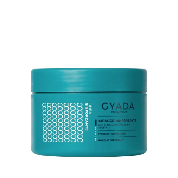 Gyada Cabello Mascarilla Espirulina Fortalecedora 250ml es una mascarilla altamente hidratante y reconstruyente que no aporta peso. Mascarilla espirulina con concentrado vitamínico y remineralizante ideal para devolver la fuerza a los cabellos más frágiles, estresados y debilitados. 250ml Contiene Espirulina (rica en Vitaminas, Aminoácidos y Sales Minerales) en sinergia con Avena, Cola de Caballo y Ginseng que fortalecen y pulen la fibra capilar, Aloe, Aceites Vegetales y Proteínas de Trigo y Soja con propiedades hidratantes, nutritivas y filmógenas. Ideal como tratamiento de choque para contrarrestar la caída del cabello y la formación de puntas abiertas.
